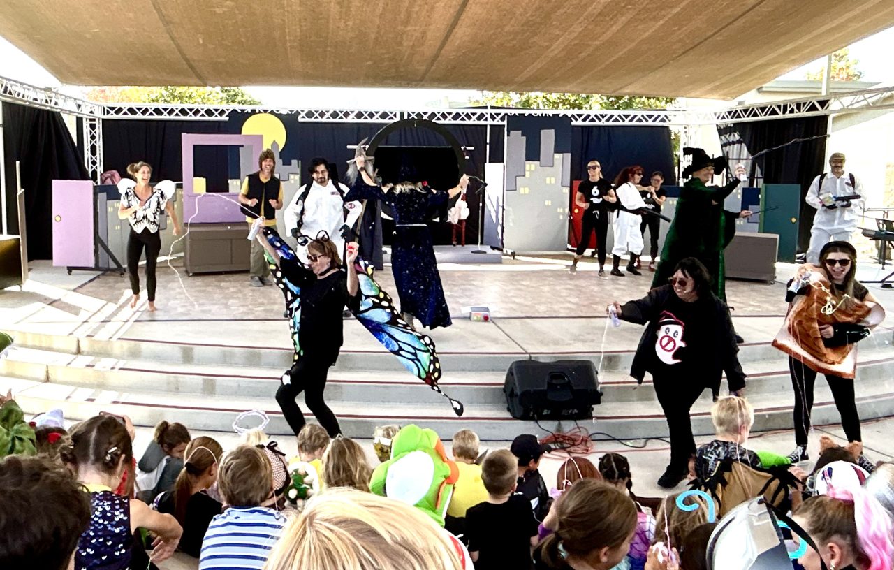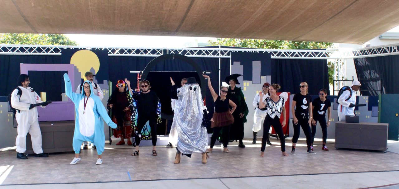 A conga line of costumed kiddos snaked through every classroom on the ECDS campus before slithering into seats in the amphitheater for the main event. ECDS faculty and staff members did not disappoint, taking the stage and the audience by storm with a rousing and raucous performance that included a haunted ECDS campus, delirious dancing teachers, and a mystery solved by none other than the Ghostbusters!