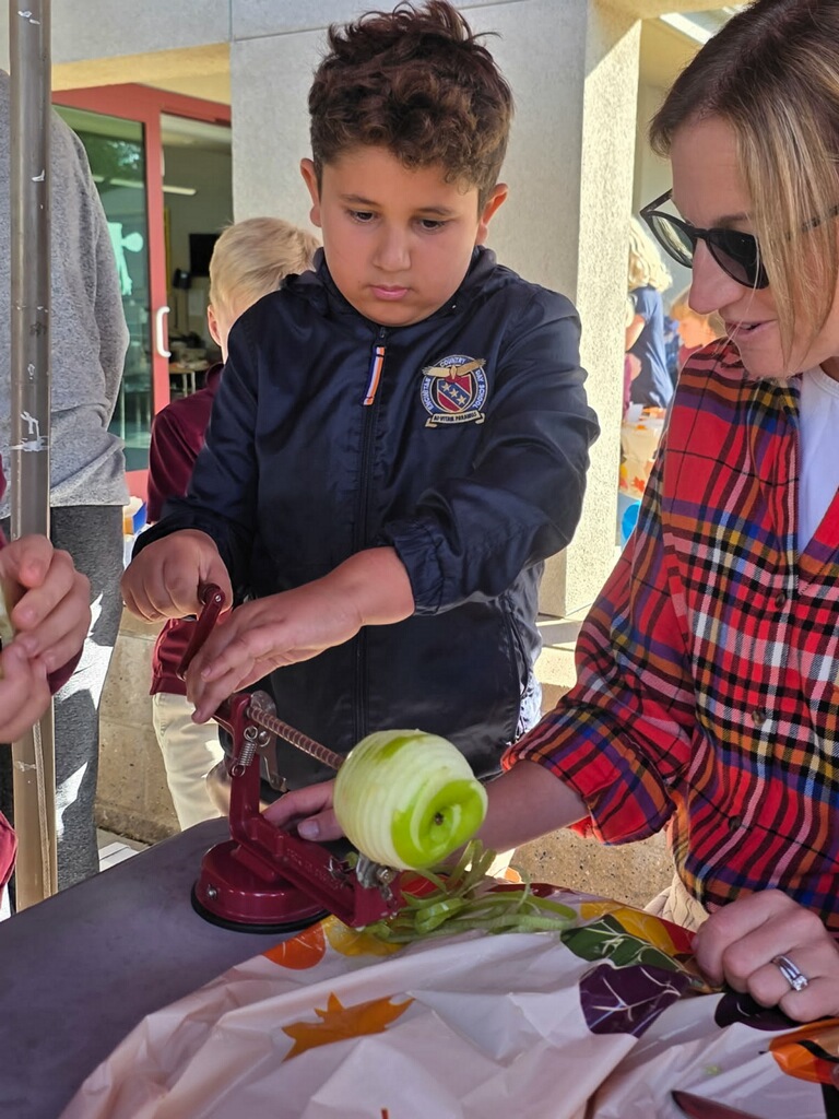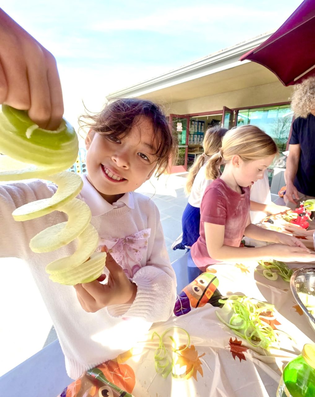 On the Tuesday before Thanksgiving, it is a long-standing tradition for students at ECDS to enjoy a mini-Thanksgiving feast at school. Students from all grade levels help prepare food for their respective feasts and create seasonal craft projects. Older students assist teachers and younger students with set-up and food service. Acts of service that benefit others provide opportunities for students to put into action the character traits they have studied – kindness, generosity, perseverance, etc. When “big kids help little kids,” students at all grade levels get a chance to experience the profound connection between service and gratitude.